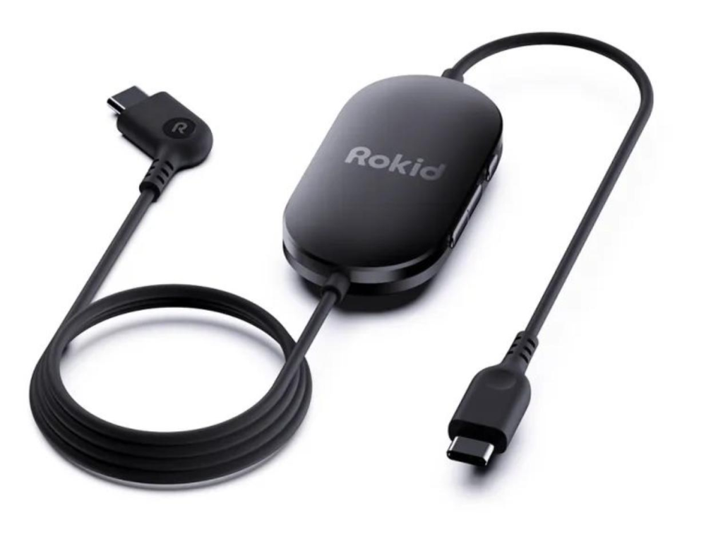 Rokid同时推出了空间显示产品Rokid Spatial Link,售价699元,可与电脑、手机、iPad、Switch、Xbox、PS5等支持DP协议的设备直接连接,将传统2D显示屏转化为3D,并支持 32:9 超宽屏模式,让外部设备画面实现巨幕显示。