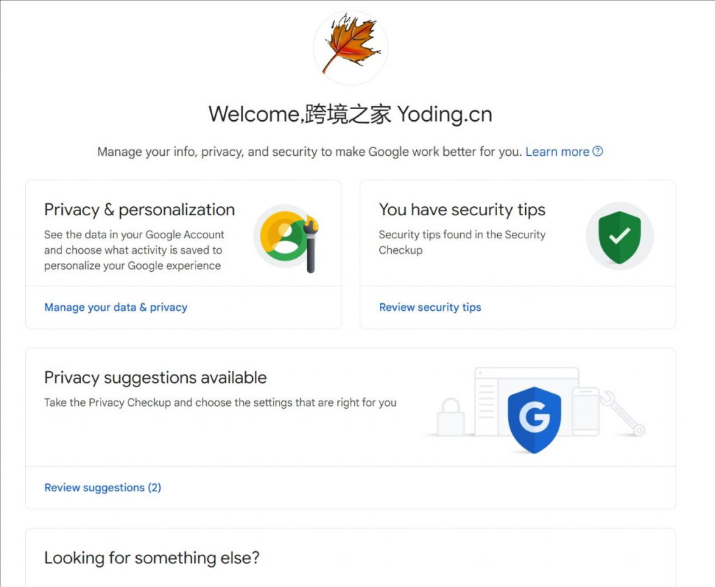 登入成功後,點擊頁面右上角的Google帳號頭像,您會看到一個名為「Manage your Google Account」(中文名稱「管理您的Google帳號」)的選項。點選該選項,進入帳戶管理頁面。
