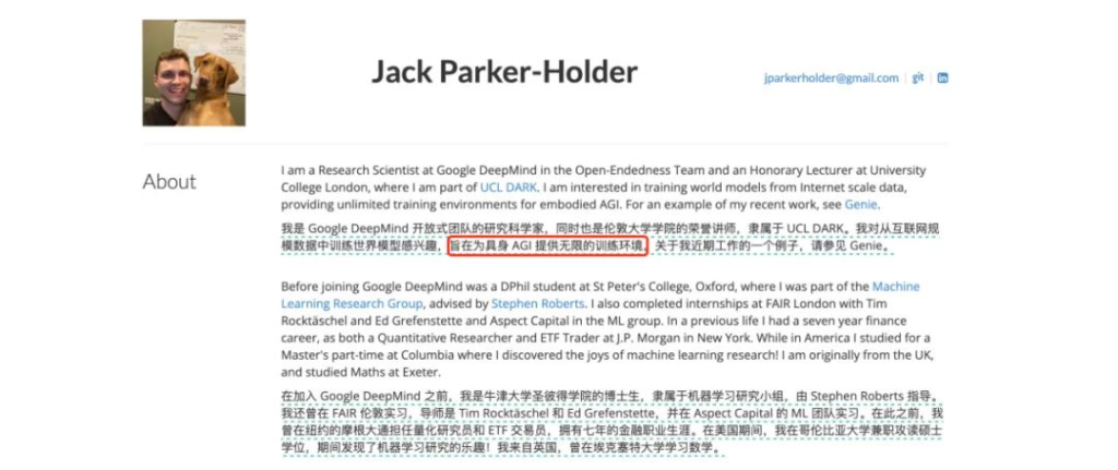 从Genie团队的构成,我们也能看到,对这个团队来讲,视频生成并非最核心的问题,智能体的交互环境的模拟才是。