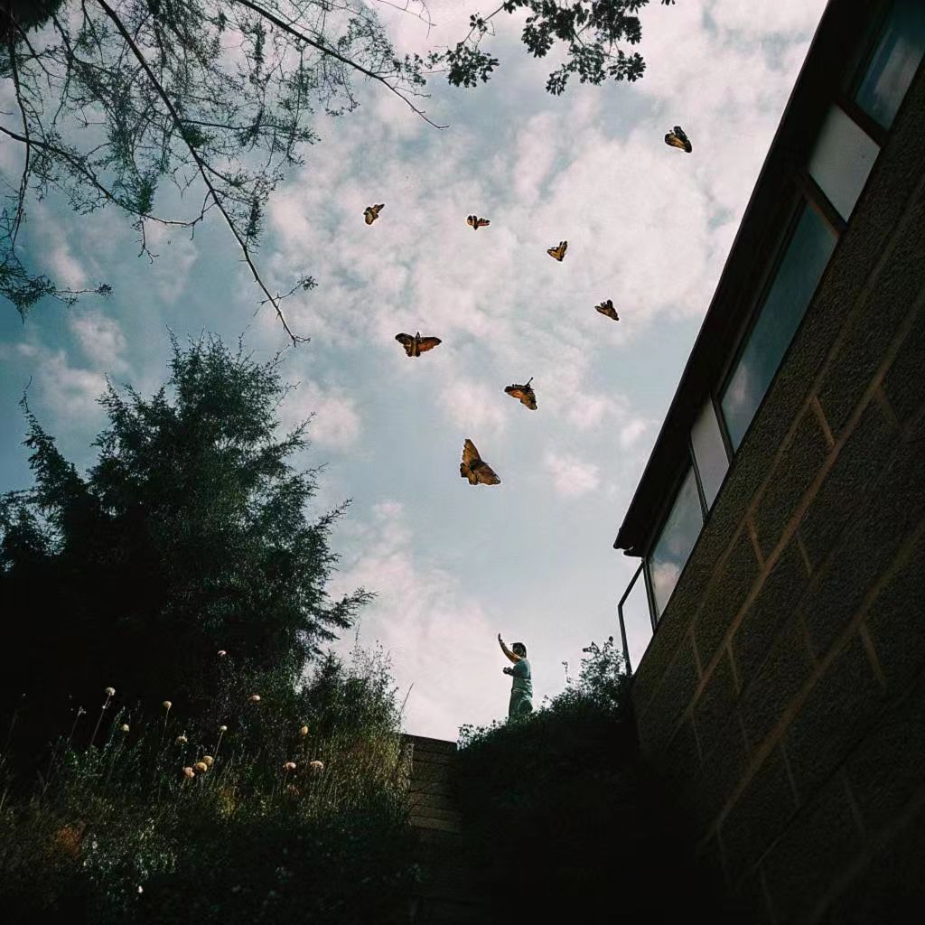提示词:随着蝴蝶的频率起飞,生活在天空第一次停顿