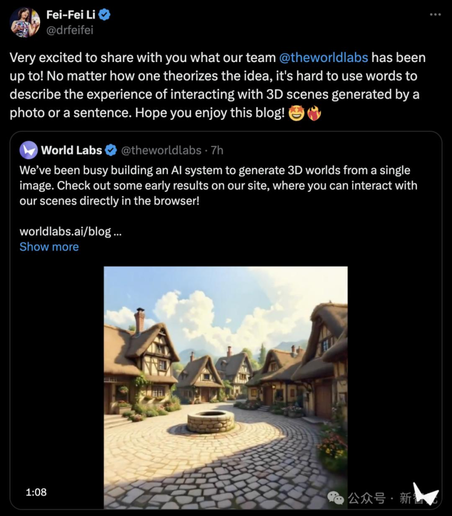 近日,著名AI学者、斯坦福大学教授李飞飞团队World Labs推出首个「空间智能」模型,仅输入单张图片,即可生成一个逼真的3D世界,这被认为是迈向空间智能的第一步。