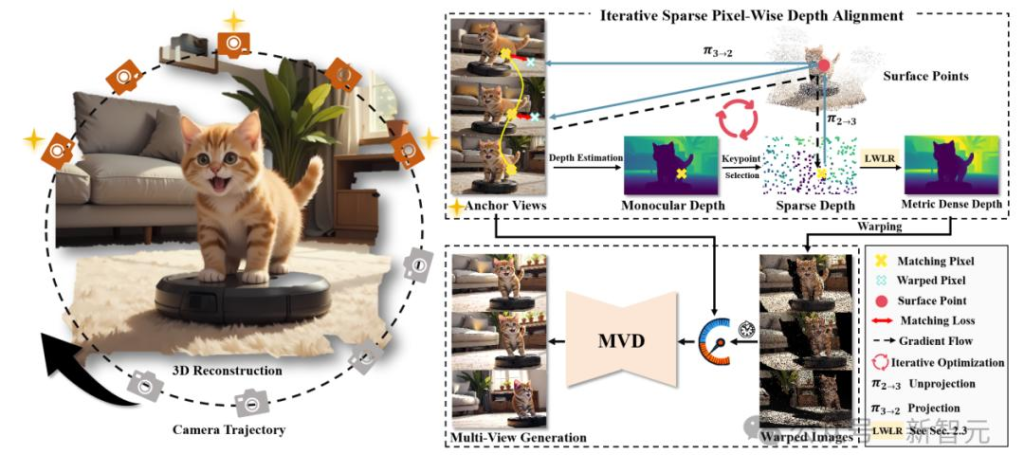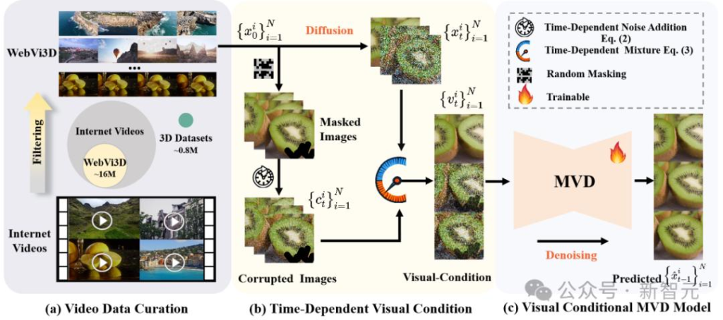 团队提出了一个视频数据筛选流程,自动去除源视频中多视角不一致或观察视角不充分的视频,构建了一个高质量、多样化的大规模多视角图像数据集WebVi3D。该数据集涵盖来自1600万个视频片段的3.2亿帧图像,可通过自动化流程随互联网视频量的增长而不断扩充。