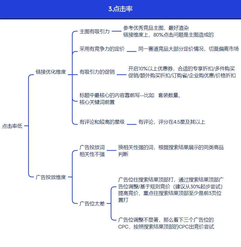 影响点击率的因素不能单看广告维度,链接优化维度也要一起关注: