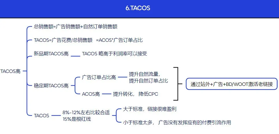TACOS=广告花费/总销售额=ACOS*广告订单占比