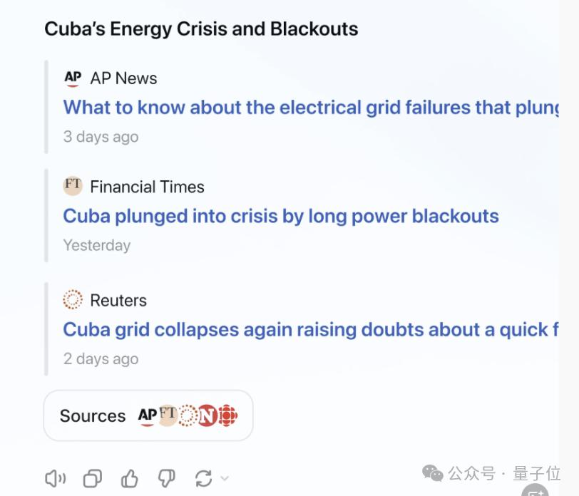新闻类消息,会在结果中呈现传统搜索引擎式的信息来源,点击后可直接跳转到原页面。