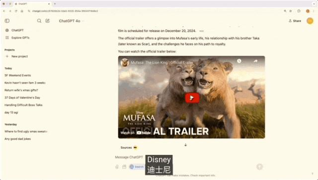 比如来源于油管的视频,可以在ChatGPT页面直接播放那种