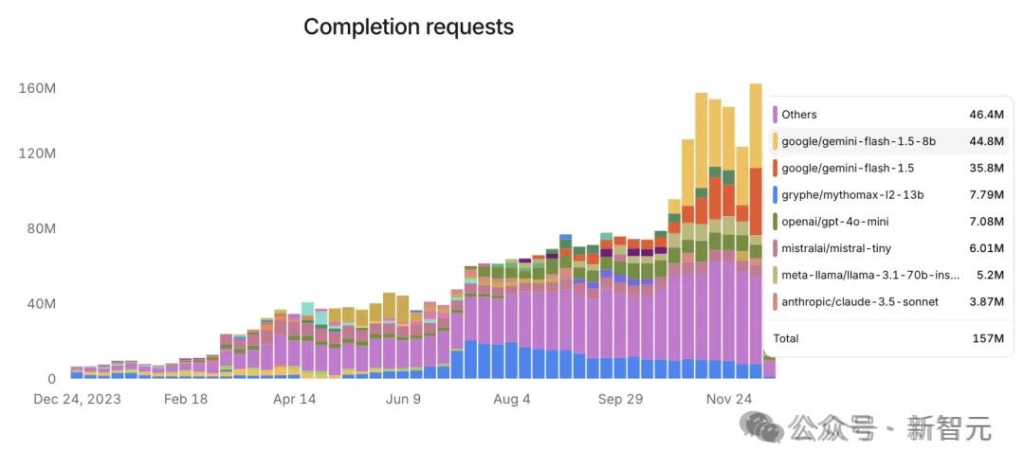 OpenRouterAI的数据显示,谷歌旗下的Gemini在开发者中的市场份额从9月份的约5%,直接飙升至>50%市场份额,遥遥领先,连带股价也上涨了14%。