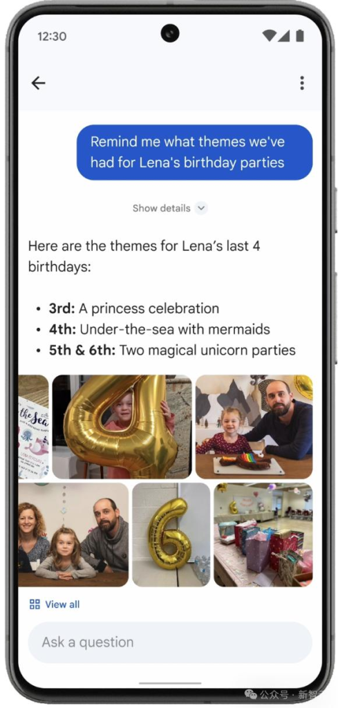 在产品方面,谷歌于今年5月基于Gemini推出Ask Photos功能,用户可以通过输入关键词,如地点、人物和日期,或是类似「主题生日派对」等自然语言概念对照片库进行检索。