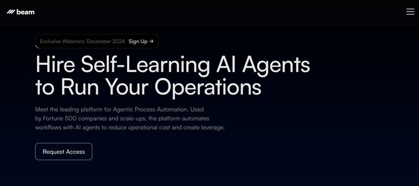 Beam是一款顶尖AI Agent平台,能够自动化多种业务功能中的重复性和复杂任务,通过与现有系统的无缝集成提升效率并减少手动错误。