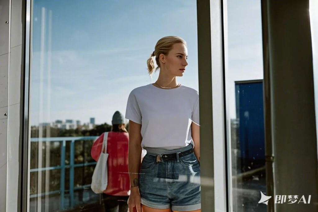 再尝试一下更复杂的改图效果。去掉原图中女孩面前的玻璃,从效果图中可以看到,即梦AI对prompt的理解还是很精准到位的,玻璃被完整消除了,而原图其他细节基本上都实现了保留。