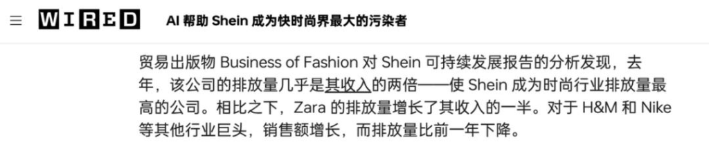 SHEIN所占据的赛道,本身就有天然不利之处。快时尚赛道在强调“快”的同时,便很难规避媒体和机构对周转模式的讨伐。