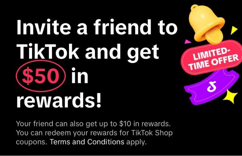 同时,TikTok Shop还推出了美国限定的“邀请新用户立减”活动,单个拉新即可获得50美元的TikTok Shop积分,并用于在TikTok Shop内部的消费。