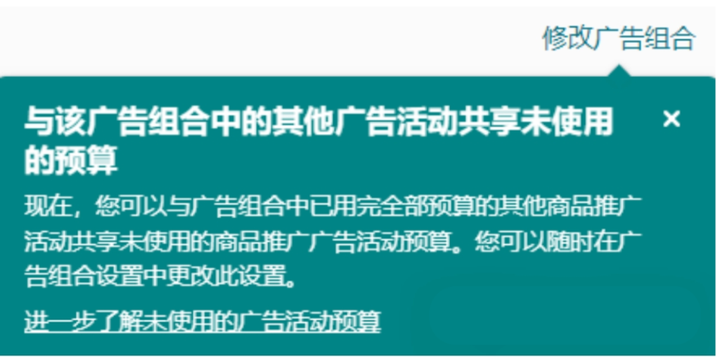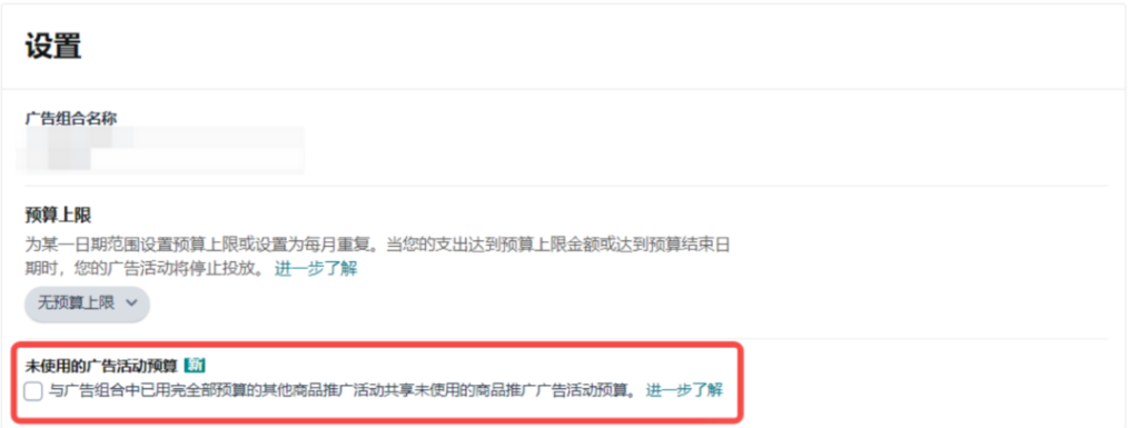 勾选之后同一个广告组合中,已经花完预算的广告活动,可以用其他有预算的广告活动的预算,也就是广告活动A、B在同一个组合,A的预算花完了,B的没花完,则A可以使用B的预算。