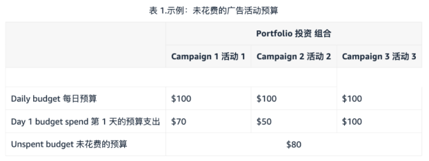 那么这个时候,广告活动3可以花费广告活动1和2剩余的80美金预算来获得更多点击和展示。