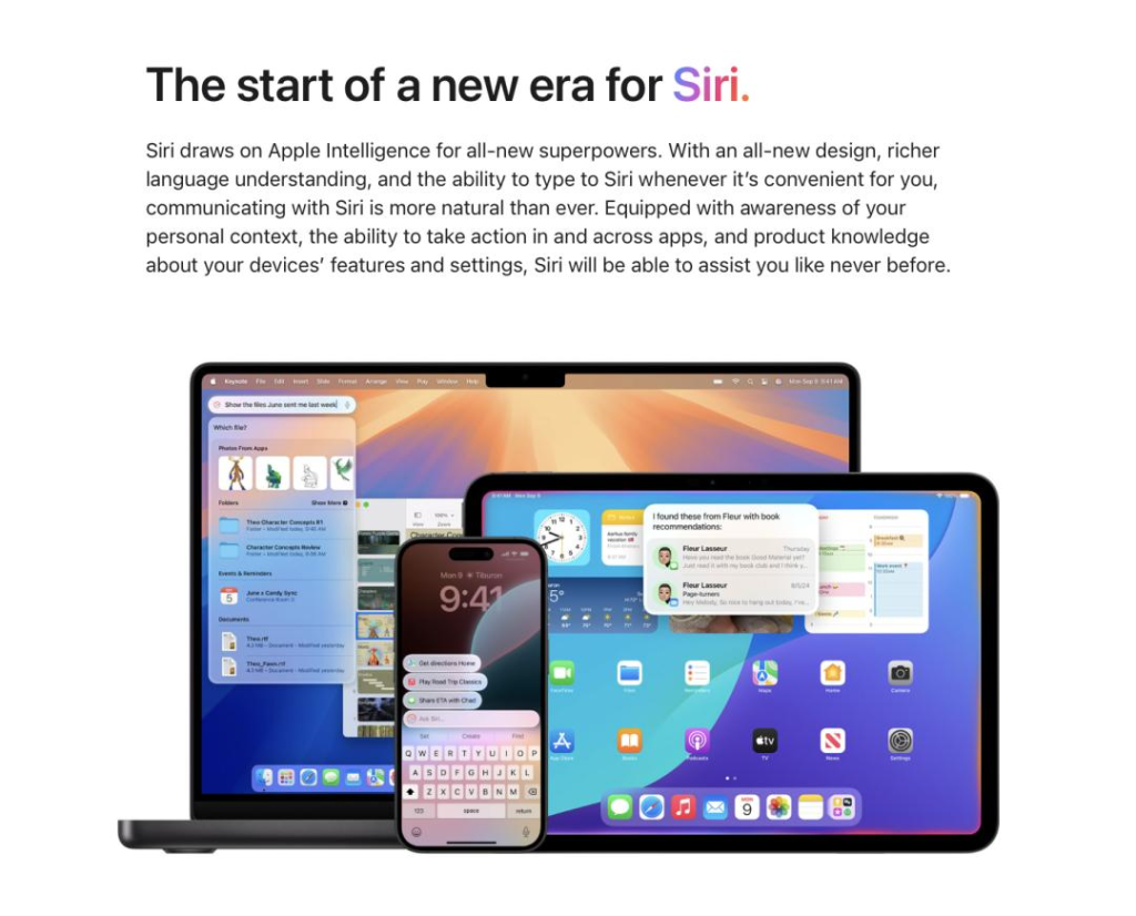 Apple Intelligence 的 Siri 页面|图源:Apple