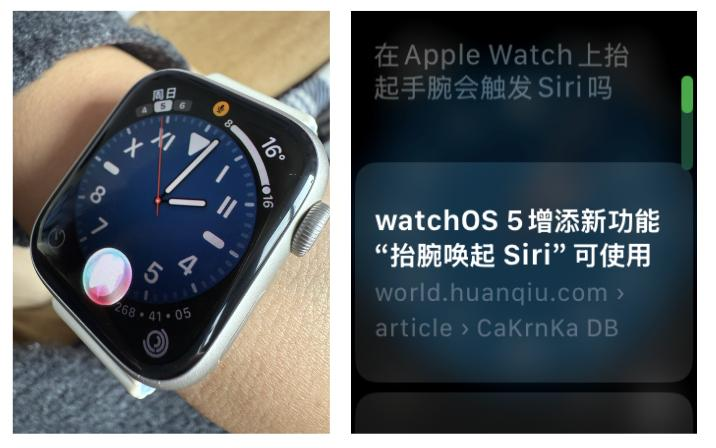 因为 Apple Watch 检测到抬起手腕后有语音输入,就会自动激活 Siri,无需说出「Hey Siri」的关键词,也没有 iPhone 上 Siri 回应的语音,直接就开启了对话,该功能至今还在,而且极易被激活。(有 Apple Watch 的读者可以尝试一下)