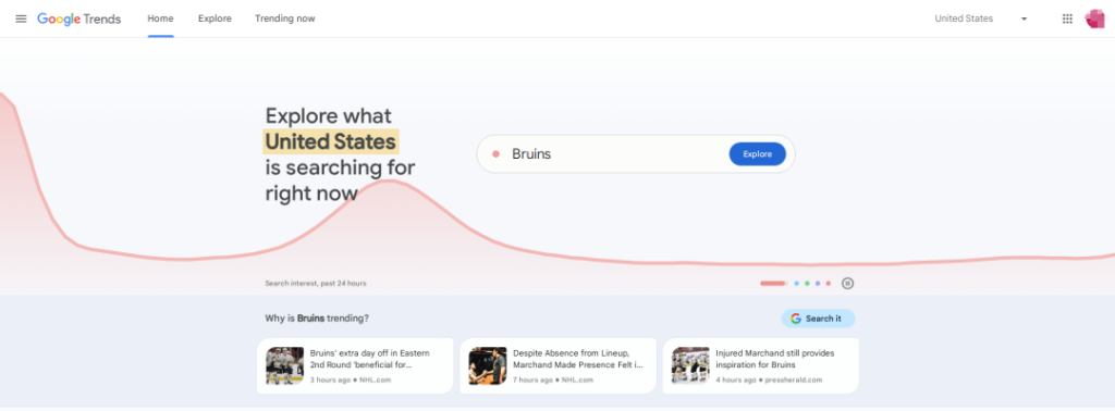 谷歌趋势与其他产品研究工具的运作方式有些不同。卖家可以输入产品主题或关键词,以查看一段时间内其在Google搜索中的搜索量。
