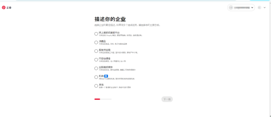 ④ 填写相关字段以描述你的企业,然后点击下一步