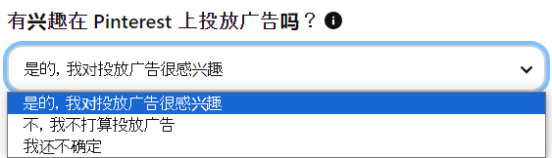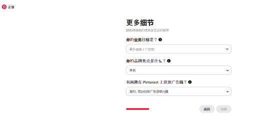 ① 需要提供:营业执照、域名、开户数量、日预算、联系邮箱、广告类型(单选)、广告投放时间、目标KPI(Roas等)、Pinterest主页链接、目标投放国家、时区。