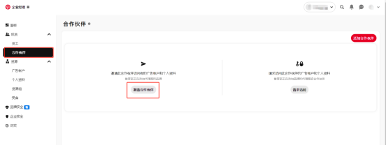 ① 左侧导航栏【合作伙伴】~【邀请合作伙伴】