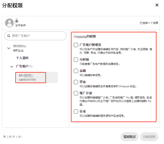 ⑤ 选择想要从何处开始,或者点击 “x 图标” 以转至新的 Pinterest 企业帐户