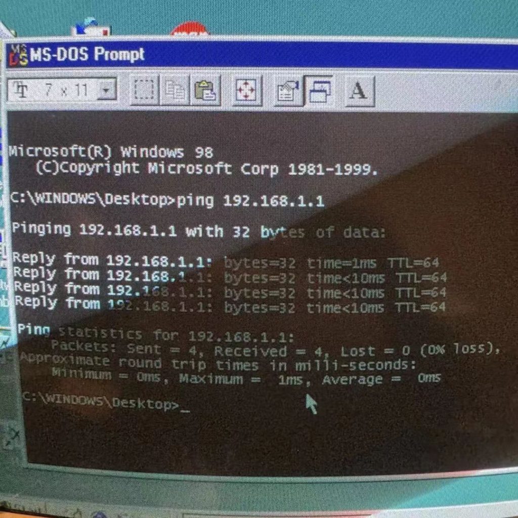 为了让 MacBook 的 USB-C 以太网适配器与 Windows 98 通信,该团队将其 IP 地址手动设置为 192.168.1.1,并验证了连接是否正常。