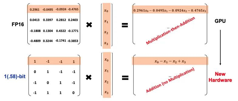 BitNet 是一种新的人工智能模型架构,旨在通过使用三元权重(ternary weights)来实现更高效的模型运行。与传统的深度学习模型使用浮点数(如 32 位或 64 位)表示权重不同,BitNet 的权重值只使用三个可能的值:0、-1 和 1,每个权重仅需 1.58 比特存储空间(log₂(3) ≈ 1.58)。这种简化的权重表示可以显著减少模型的存储需求和计算量,从而使得模型能够在硬件资源有限的设备上运行。