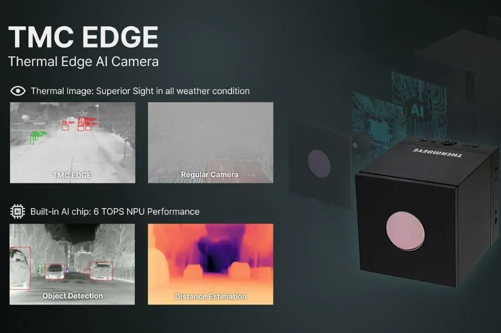 这是Thermoeye公司推出的用于自动驾驶等用途的热成像边缘AI摄像头,简称:TMC EDGE。