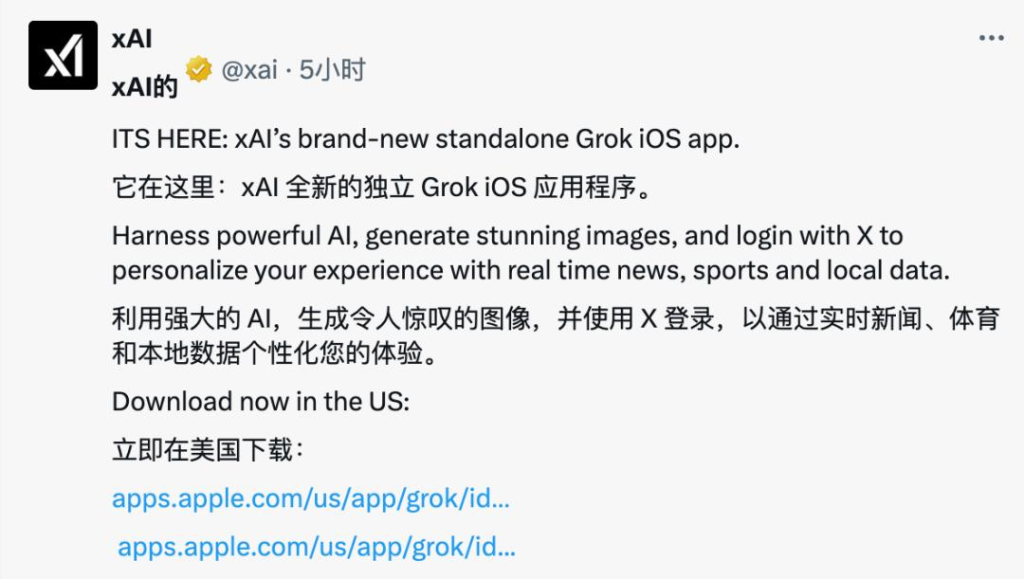 指路 ��:https://apps.apple.com/us/app/grok/id6670324846