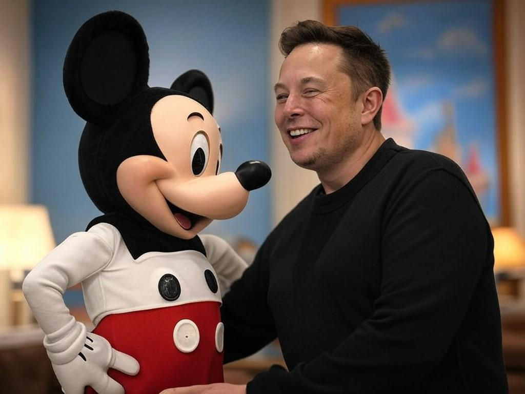 迪士尼似乎默许了 GroK 2 能随意生成米老鼠天马行空的照片,别说,米老鼠和马斯克的合照还挺萌的。