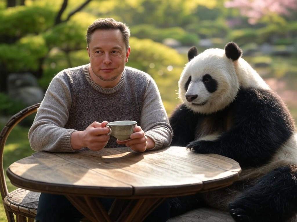 在 Grok 的画布上,马斯克能和任何人同框,哪怕是哥斯拉,大熊猫。 我们还生成了许多不一样的照片,欢迎滑动查看。
