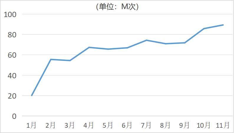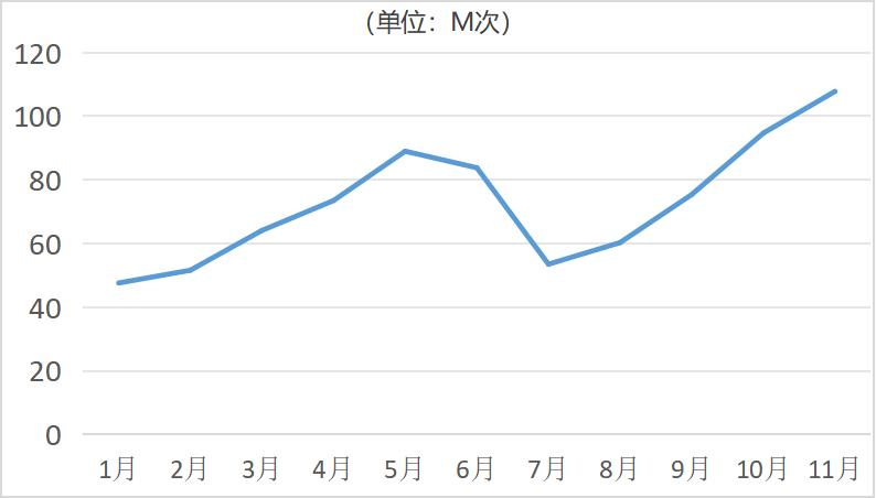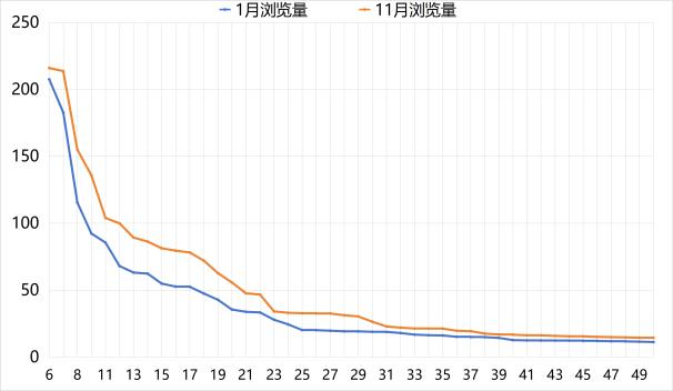 ▲TOP6~TOP 50,1月与11月访问量对比(单位:M)