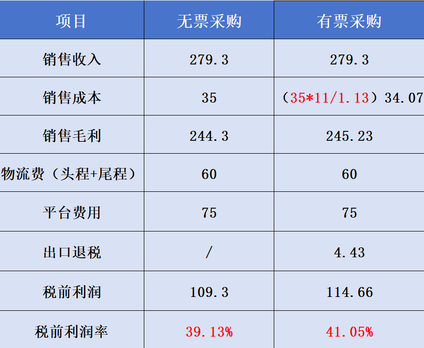 通过数据比对,取票后申请出口退税利润变多了。只要取票点数低于产品出口退税率,申请出口退税就能提升产品销售利润率。