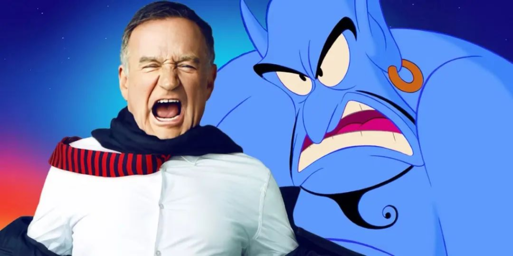 上世纪九十年代时,Robin Williams 为动画电影《阿拉丁》中的神灯精灵配音,他精彩的表演让这个配角,一下子成为大受观众喜爱的角色。
