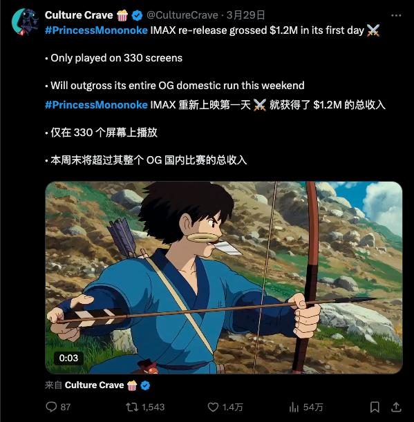 正在这个风口浪尖上,《幽灵公主》 4K 修复版在北美 IMAX 影院上映,发行商 GKids 的副总裁发表声明,没有明确回应,只是说,「在这个科技试图复制人类创作的时代, 我们很高兴看到观众依然珍视影院的观影体验,欣赏宫崎骏与吉卜力工作室的作品,感受它们所承载的、纯粹的手绘之美。」