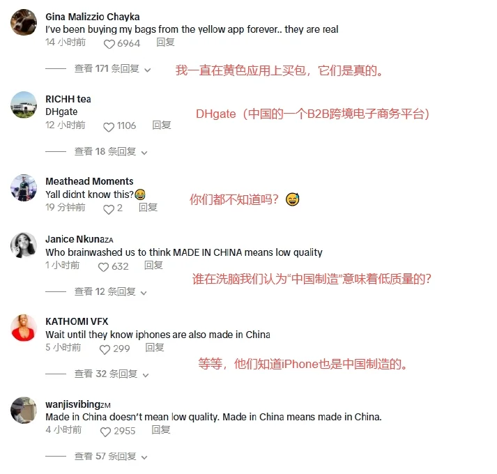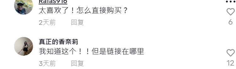 在中国厂商发布的视频中,有很多用户在留言区评论对这些产品很感兴趣,并询问哪里有链接可以直接购买,还表示自己以后就在这里购买商品。同时,一些中国的电商平台,如淘宝、阿里巴巴、 Dhgate(敦煌网)等不断出现在视频评论区,许多海外用户像是发现了新大陆,纷纷催促视频中的中国卖家添加购买链接。