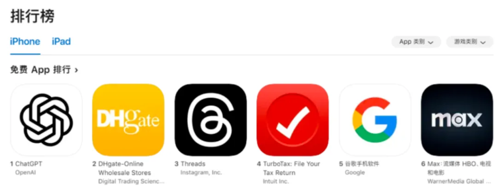 时间回到4月15日凌晨,美国苹果应用商店正在上演魔幻的一幕:中国B2B跨境电商平台敦煌网(DHgate)以单日下载量暴增940%的火箭速度,迅速超越亚马逊、沃尔玛,登顶购物类App TOP前列,总榜仅次于ChatGPT。