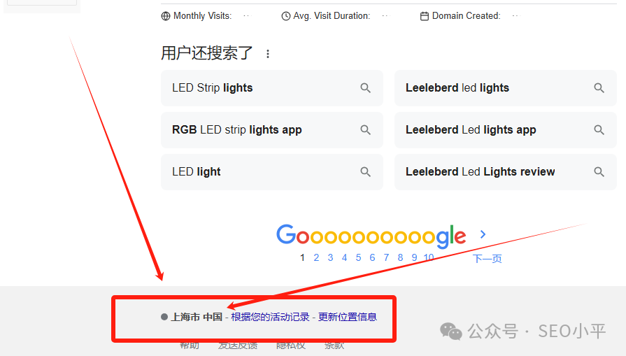 如下截图:谷歌会在SERP最底下,告诉你当前你的关键词来源是谷歌的【某某国家某某城市】的数据库的内容。谷歌和TikTok一样是把不同的内容存储到不同的数据库的,为了方便当地人快速搜索出结果。