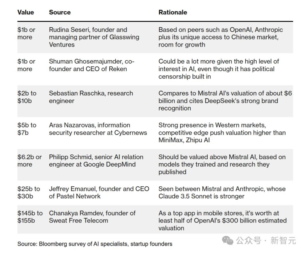 根据七位初创公司创始人和AI专家的说法,DeepSeek的市值大约在10亿美元到超过1500亿美元不等。