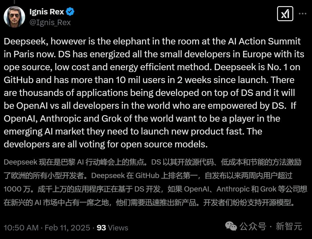 DeepSeek俨然已成为巴黎AI峰会上「房间里的大象」,在这里,人们对AI的讨论此起彼伏,却鲜有直接提及「DeepSeek」。