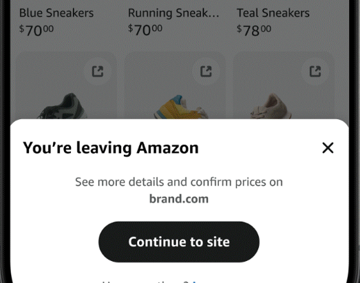 亚马逊正在测试一个重要机制(功能),允许品牌店铺将流量导入到自己的独立站之中。顾客在点击“继续访问独立站”,可以跳转到站外购物。这是亚马逊对卖家做出的一个大让步,在巩固其自身护城河,阻击Temu等方面有着较大的意义。