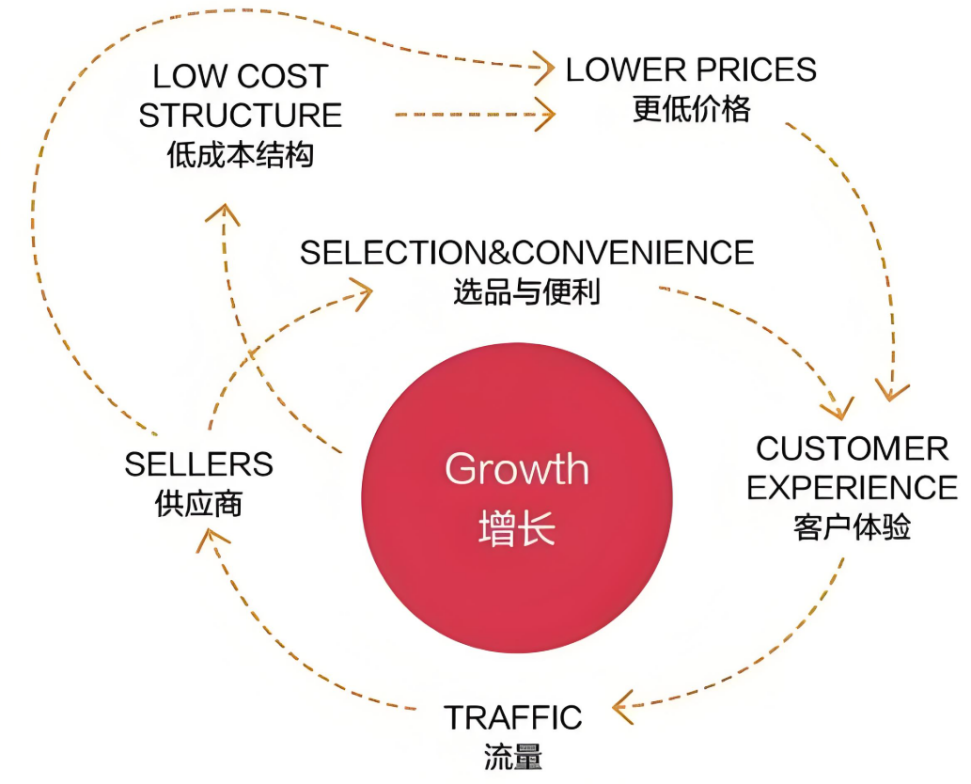 在搜索结果中显示“站外商品”,并允许顾客“跳转到站外”去购物,这一举措,比亚马逊以往的“向站外导流”的机制,要激进很多。「蓝海亿观」认为,这一举措至少有三个目的,一、大大“亚马逊商品”的丰富度;二、让顾客买到更多低价的商品,因为在独立站上,卖家没有佣金甚至广告的成本压力,卖家可以将价格打到很低,由此对Temu、SHEIN、TikTok Shop实现强有力的阻击;三、提高品牌粘性,将更多品牌商尤其是大品牌商(如倩碧、雅诗兰黛、Oura Rings、阿玛尼美妆、杜嘉班纳等)纳入到亚马逊生态,在生态内形成一个强大的品牌矩阵效应,给顾客提供一个真正的“一站式购物入口”——想要买便宜的白牌商品,我有,先要买高端的品牌商品,我也有,只要一个入口便足够了,与提供低价白牌商品的Temu形成区隔。亚马逊的最大动机,就是要巩固其作为“线上第一购物入口”的地位。如今,亚马逊面对的竞争压力今非昔比。Temu、SHEIN、TikTok Shop、沃尔玛、Shopify等对手虎视眈眈,尤其是Temu作为一个江湖新手,在短短两三年之内,乱拳打伤无数老师傅,最终坐在主桌上与亚马逊针锋相对地掰手腕了。据伯恩斯坦发布的报告,在美国市场,Temu的月活用户实现了指数级增长,而亚马逊的用户数却出现了下滑。同样,TikTok Shop也咄咄逼人,进入美国市场16个月,其GMV就达到了90亿美元,同比增长了650%。相比之下,根据2024年财报数据,亚马逊电商业务虽然一路长虹,但没有跑赢大盘。毫无疑问,这是一个巨大的危机。亚马逊痛定思痛,回归到其“增长飞轮”找思路和答案。亚马逊认为,“更低的价格——更多的产品——更便利的购物体验——更好的用户体验”不仅是其增长的驱动力,同时也是其反击对手的最佳法宝。