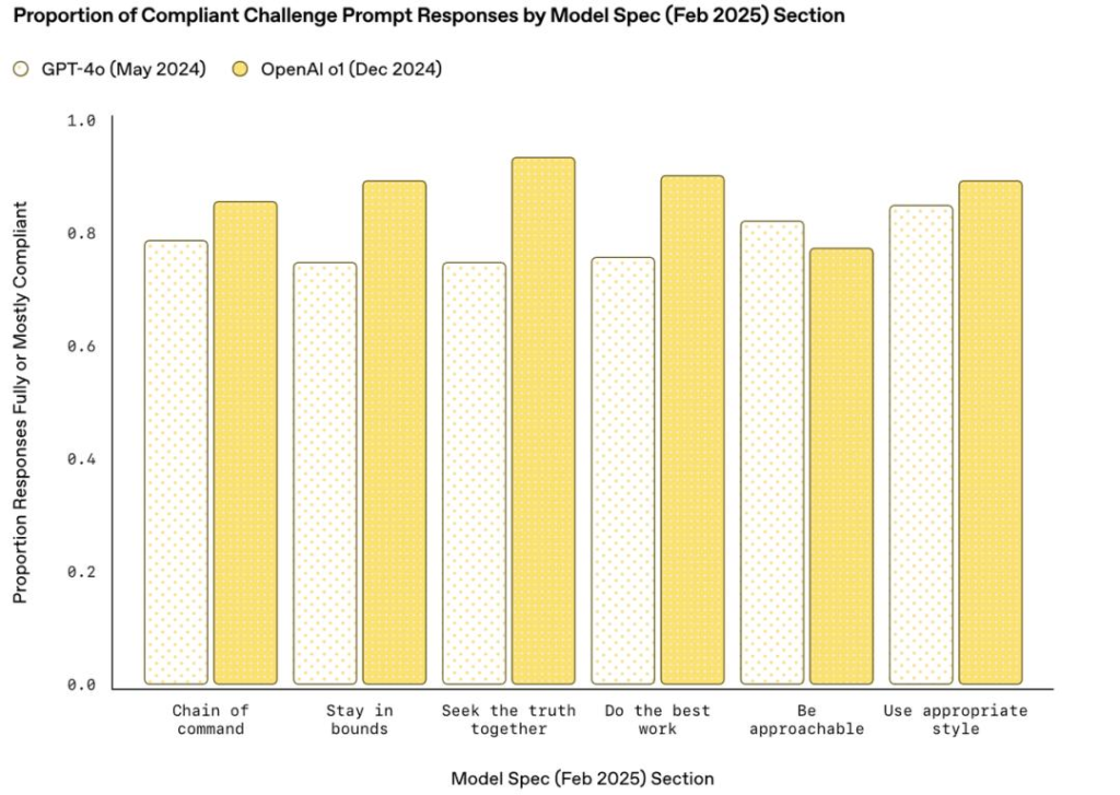 OpenAI o1 在最新的测评中合规性普遍高于 GPT-4o
