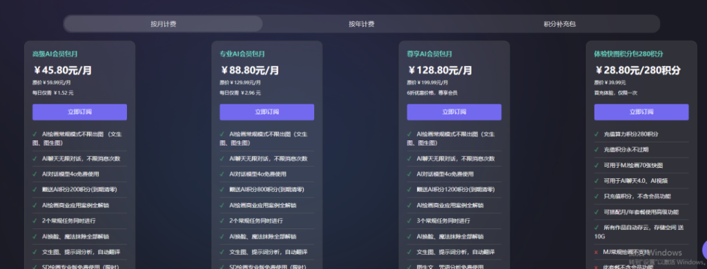 2.StableDiffusion:可文字生图,图生图,没有试用权限,需购买会员。