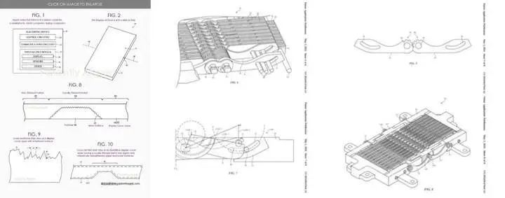爱范儿也从苹果的专利中,找到了一些关于「无折痕」技术的端倪。去年年底,美国专利商标局正式授予苹果一项与可折叠显示设备相关的专利,在这份专利文件中,详细描述过苹果的铰链设计: