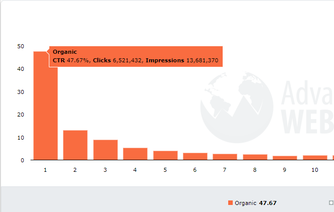 举例:假设machine learning这个词月搜索量为10,000,我网站的其中一个页面在这个词下的排名为第1名,我们按照第一名的CTR为47.67%,那么这个关键词排名在第一位带来的流量是:10000×47.67%=4,767。