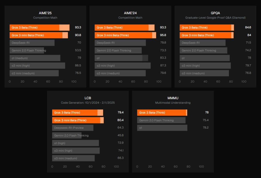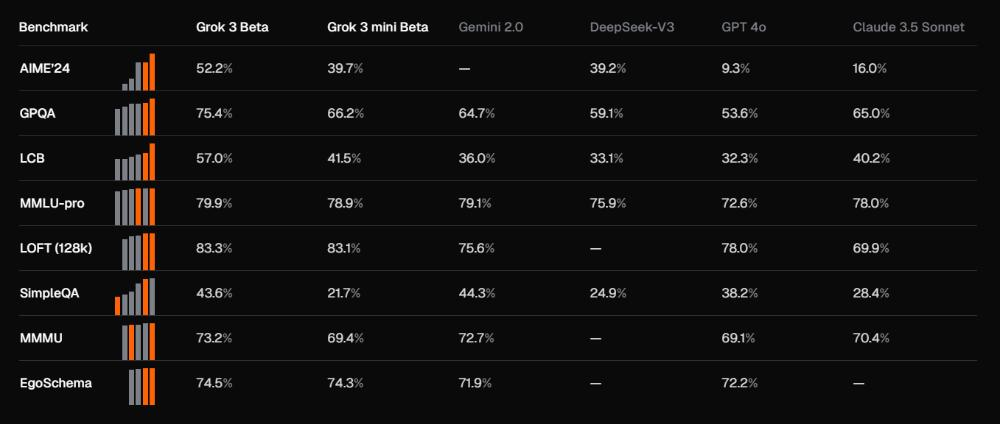 该公司在今年2月推出新一代Grok 3模型,这是目前xAI性能最先进的版本,结合了强大的推理能力和丰富的预训练知识。该模型在其Colossus超级计算集群上完成训练,使用的计算资源是之前顶尖模型的10倍。Grok 3在推理、数学、编程、常识和指令执行等任务上都有显著提升。