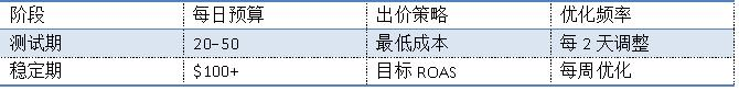 l 7天后:优化ROAS(目标>2.0)同时删除CPA>$10的广告组