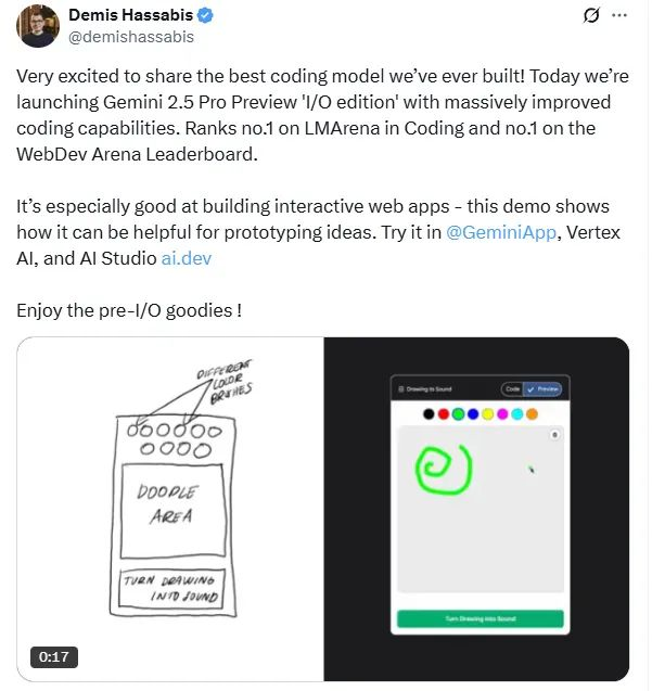 DeepMind CEO德米斯·哈萨比斯表示,这是“我们有史以来构建的最强编程模型!”