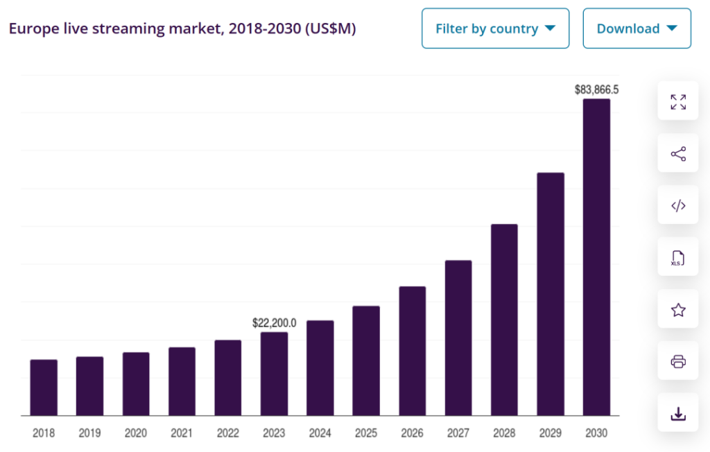 随着TikTok在欧洲的影响力持续攀升,其主导的视频带货、直播购物也逐渐深入人心。统计显示,2023年欧洲直播购物市场规模约为222亿美元, 至2030年将增至839亿美元,期间年复合增长率高达20.9%。